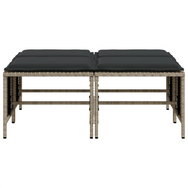 Gartenhocker mit Kissen 4 Stk. Hellgrau Poly Rattan
