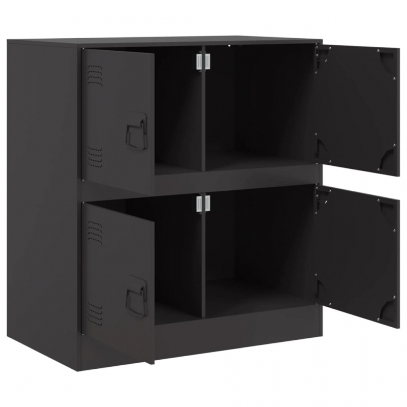 Dieses robuste Sideboard wird mit seinem trendigen und dennoch praktischen Design sicherlich der Mittelpunkt Ihres Wohnzimmers werden. Stabiles Material: Der Rahmen des Sideboards besteht aus kaltgewalztem Stahl. Kaltgewalzter Stahl ist eine Art kohlenstoffarmer Stahl, der im „Kaltwalzverfahren“ hergestellt und bei nahezu normalen Raumtemperaturen verarbeitet wird. Kaltgewalzter Stahl besitzt eine glattere Oberfläche, eine höhere Festigkeit und lässt sich präziser verarbeiten.Reichlich Stauraum: Dieser Schrank bietet praktischen Stauraum für Zeitschriften, Bücher, Bürobedarf, Dokumente und andere Gegenstände, die hier gut geordnet und in Reichweite aufbewahrt werden können.Pflegeleicht: Der Tisch lässt sich mit einem feuchten Tuch leicht reinigen und erfordert wenig Pflege.Praktischer Griff: Das Sideboard ist mit 4 Griffen ausgestattet, die das Öffnen und Schließen des Schranks erleichtern und gleichzeitig zu seiner ansprechenden Optik beitragen. Achtung:Um ein Umkippen zu verhindern, muss dieses Produkt mit einer Wandhalterung (nicht im Lieferumfang enthalten) gesichert werden.