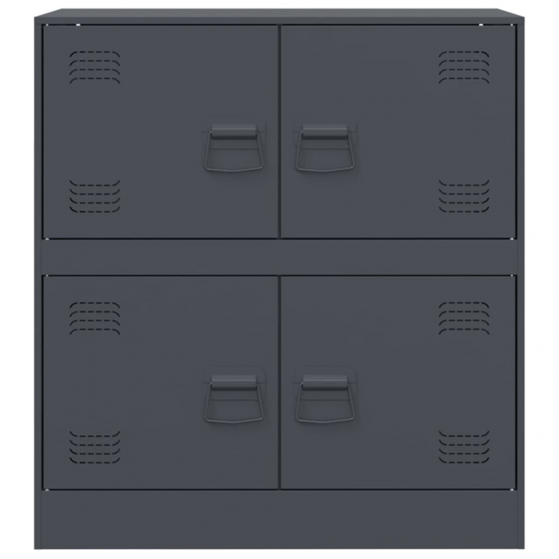 Dieses robuste Sideboard wird mit seinem trendigen und dennoch praktischen Design sicherlich der Mittelpunkt Ihres Wohnzimmers werden. Stabiles Material: Der Rahmen des Sideboards besteht aus kaltgewalztem Stahl. Kaltgewalzter Stahl ist eine Art kohlenstoffarmer Stahl, der im „Kaltwalzverfahren“ hergestellt und bei nahezu normalen Raumtemperaturen verarbeitet wird. Kaltgewalzter Stahl besitzt eine glattere Oberfläche, eine höhere Festigkeit und lässt sich präziser verarbeiten.Reichlich Stauraum: Dieser Schrank bietet praktischen Stauraum für Zeitschriften, Bücher, Bürobedarf, Dokumente und andere Gegenstände, die hier gut geordnet und in Reichweite aufbewahrt werden können.Pflegeleicht: Der Tisch lässt sich mit einem feuchten Tuch leicht reinigen und erfordert wenig Pflege.Praktischer Griff: Das Sideboard ist mit 4 Griffen ausgestattet, die das Öffnen und Schließen des Schranks erleichtern und gleichzeitig zu seiner ansprechenden Optik beitragen. Achtung:Um ein Umkippen zu verhindern, muss dieses Produkt mit einer Wandhalterung (nicht im Lieferumfang enthalten) gesichert werden.