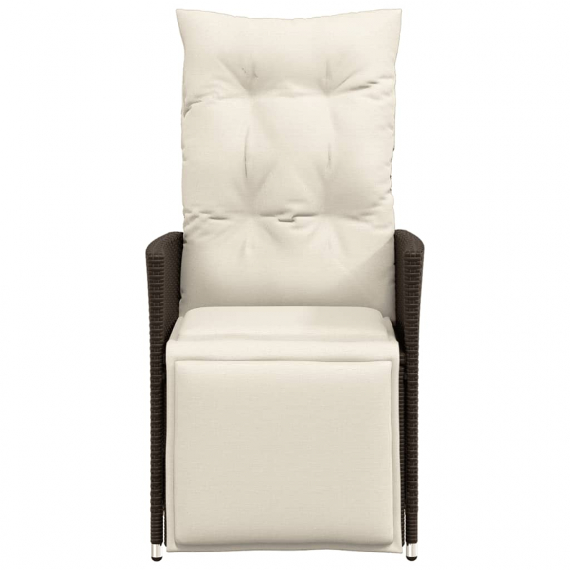 Entspanne dich und genieße die Natur in diesen bequemen Gartenstühlen! Langlebiges Material: PE-Rattan, auch als Poly Rattan bekannt, ist ein robustes, pflegeleichtes synthetisches Material, das die Optik von natürlichem Rattan aufweist. Es kennzeichnet sich durch ein geringes Eigengewicht und lässt sich einfach reinigen. Aufgrund seiner Haltbarkeit und Witterungsbeständigkeit wird es häufig bei der Herstellung von Gartenmöbeln verwendet.Verstellbare Rückenlehne und Fußstütze: Der Gartensessel ist mit einem Griff versehen. So kannst du die Rückenlehne und den Fußteil durch Ziehen des Griffs verstellen und sie danach schnell wieder in ihre ursprüngliche Position bringen.Bequemes Sitzerlebnis: Dieser Gartensessel mit dick gepolsterten Kissen bietet ein angenehmes Sitzgefühl.Abnehmbarer und waschbarer Bezug: Die Sitzkissen verfügen über abnehmbare Bezüge, die sich ganz einfach waschen und reinigen lassen. Dank der Klappen an der Rückseite können die Rückenkissen ganz einfach an den Rückenlehnen befestigt werden.Robuster und stabiler Rahmen: Dank des pulverbeschichteten Stahlrahmens ist das Outdoor-Möbel robust, stabil und für den täglichen Einsatz im Außenbereich geeignet. Gut zu wissen:Wir empfehlen dir, deine Gartenmöbel mit einer wasserdichten Hülle zu schützen, um lange Zeit eine ansprechende Optik aufzuweisen.