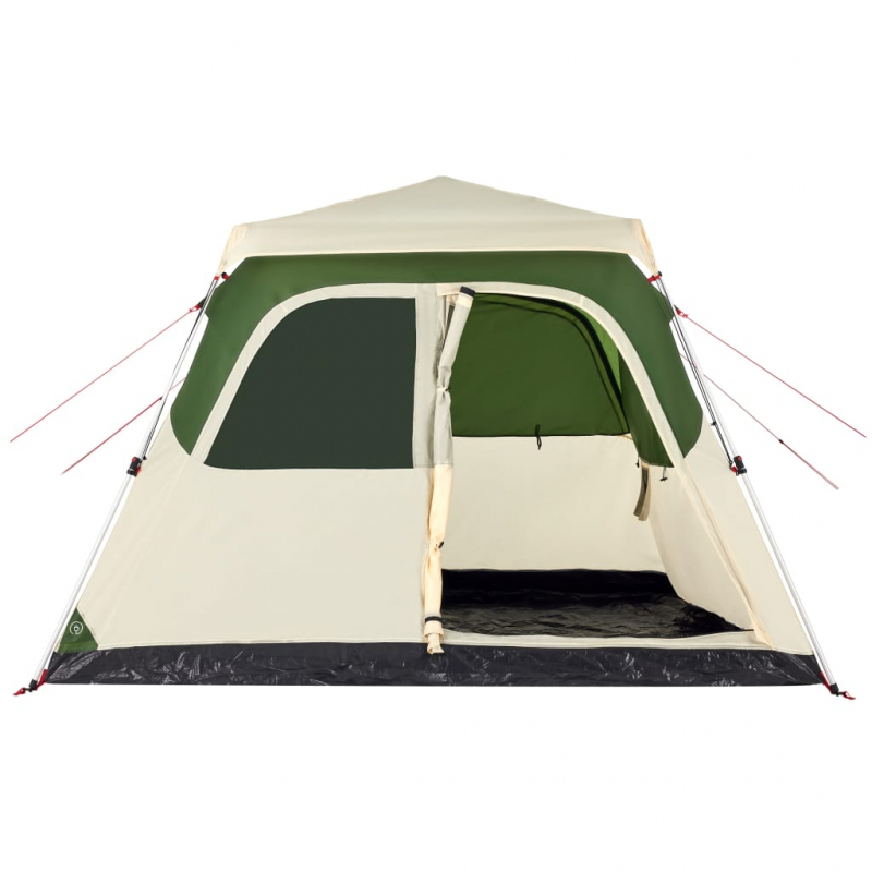 Dieses moderne Familienzelt schützt vor unangenehmen Wetter und bietet einen komfortablen Platz bei Abenteuern. Rundum wasserdichtes Design: Aus Polyester mit PU-Beschichtung gefertigt, ist dieses Campingzelt wasser- und winddicht. Die versiegelten Nähte verhindern effektiv das Eindringen von Regenwasser, während die strapazierfähige Bodenplane für ein trockenes und komfortables Interieur sorgt.Quick-Release-System: Dank des Quick-Release-Systems lässt sich das Zelt mühelos aufbauen! Lege das Zelt auf den Boden, ziehe das vormontierte Gestänge heraus, bis es einrastet, und schon ist das Zelt einsatzbereit!Abnehmbares Überzelt: Das abnehmbare Überzelt lässt sich an der Zeltoberseite befestigen, um Wetterschutz zu bieten und Privatsphäre zu schaffen.Praktischer Zugang zum Stromkabel: Dank des E-Anschlusses kannst du ganz einfach ein Verlängerungskabel von einer externen Stromquelle an dein Zelt anschließen.Leicht und tragbar: Dank des faltbaren und leichten Designs lässt sich das Zelt einfach verpacken und in der mitgelieferten Tragetasche mühelos verstauen und transportieren. Achtung:Halte alle Flammen und Wärmequellen von diesem Zeltstoff fern.