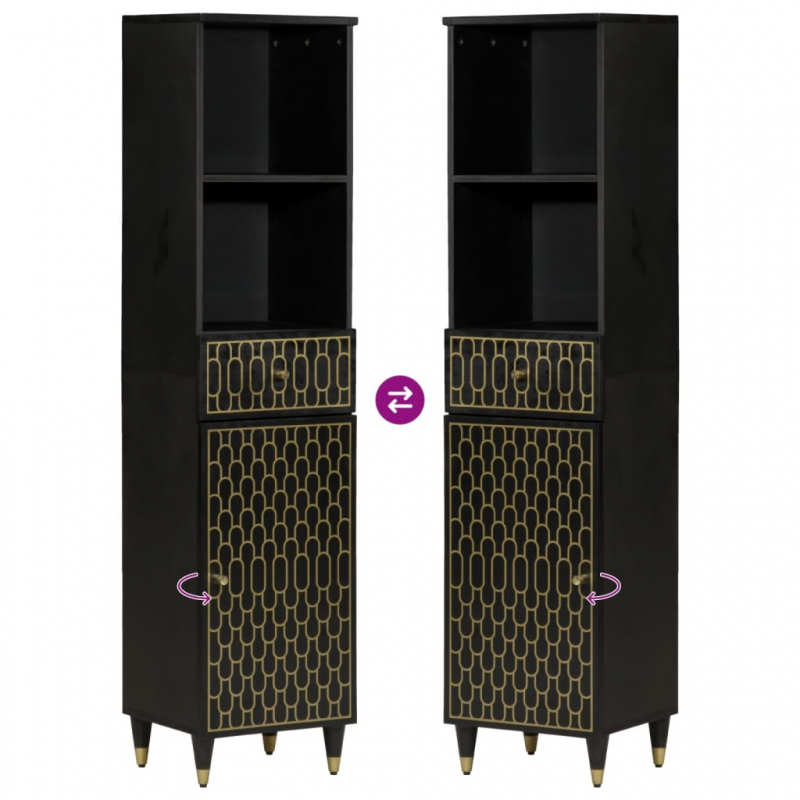 Dieser Badschrank ist eine ausgezeichnete Wahl, um für Ordnung in deinem Badezimmer zu sorgen! Mango-Massivholz: Massives Mangoholz ist ein robustes, tropisches Hartholz, aus dem sich robuste Möbel herstellen lassen. Die optisch ansprechende Holzmaserung macht jedes Möbelstück zu einem Unikat. Der Badschrank ist aus massivem Mangoholz gefertigt und daher langlebig und stabil.Reichlich Stauraum: Der Badezimmerschrank bietet reichlich Stauraum, um wichtige Sachen ordentlich und griffbereit aufzubewahren.Flexible Tür: Du kannst die Tür je nach Bedarf auf der linken oder rechten Seite montieren.Starke Beine: Die Eisenbeine verleihen dem Badschrank zusätzliche Robustheit und Stabilität.Retro-Stil: Mit einem handgeschnitzten Blumenmuster versehen, bringt dieser Beistellschrank den Luxus des Retro-Stils in dein Interieur und wird überall ein echter Hingucker sein. Gut zu wissen:Jedes Stück ist ein Unikat, das in Farbe und Maserung variiert. Die Lieferung erfolgt in zufälliger Reihenfolge, wodurch die Exklusivität und Individualität deines Produkts gewährleistet wird. Achtung:Um ein Umkippen zu vermeiden, sollte dieses Produkt mit der mitgelieferten Wandhalterung gesichert werden.