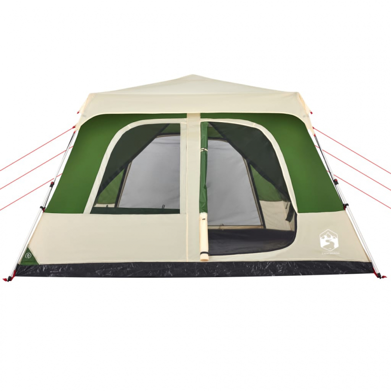 Dieses moderne Familienzelt schützt vor unangenehmen Wetter und bietet einen komfortablen Platz bei Abenteuern. Rundum wasserdichtes Design: Aus Polyester mit PU-Beschichtung gefertigt, ist dieses Campingzelt wasser- und winddicht. Die versiegelten Nähte verhindern effektiv das Eindringen von Regenwasser, während die strapazierfähige Bodenplane für ein trockenes und komfortables Interieur sorgt.Quick-Release-System: Dank des Quick-Release-Systems lässt sich das Zelt mühelos aufbauen! Lege das Zelt auf den Boden, ziehe das vormontierte Gestänge heraus, bis es einrastet, und schon ist das Zelt einsatzbereit!Abnehmbares Überzelt: Das abnehmbare Überzelt lässt sich an der Zeltoberseite befestigen, um Wetterschutz zu bieten und Privatsphäre zu schaffen.Praktischer Zugang zum Stromkabel: Dank des E-Anschlusses kannst du ganz einfach ein Verlängerungskabel von einer externen Stromquelle an dein Zelt anschließen.Leicht und tragbar: Dank des faltbaren und leichten Designs lässt sich das Zelt einfach verpacken und in der mitgelieferten Tragetasche mühelos verstauen und transportieren. Achtung:Halte alle Flammen und Wärmequellen von diesem Zeltstoff fern.