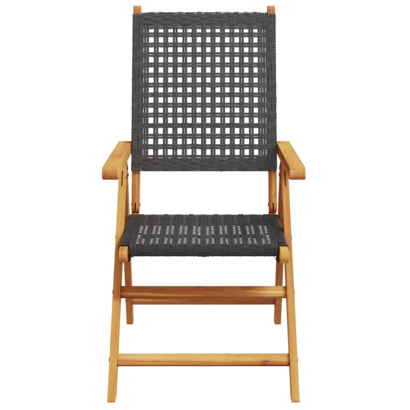 Entspanne dich und genieße die Natur in diesen bequemen Gartenstühlen! Robust und stabil: Massives Akazienholz ist für seine Festigkeit und Haltbarkeit bekannt. Seine vielfältige Farbe und seine einzigartige Maserung verleihen ihm eine attraktive Optik. Dank seiner ausgezeichneten Stabilität und Witterungsbeständigkeit eignet es sich ideal für die Herstellung von Innen- und Außenmöbeln.Langlebiges Material: PE-Rattan, auch als Poly Rattan bekannt, ist ein robustes, pflegeleichtes synthetisches Material, das die Optik von natürlichem Rattan aufweist. Es kennzeichnet sich durch ein geringes Eigengewicht und lässt sich einfach reinigen. Aufgrund seiner Haltbarkeit und Witterungsbeständigkeit wird es häufig bei der Herstellung von Gartenmöbeln verwendet.Liegefunktion: Der Gartenstuhl ist mit Liegefunktion ausgestattet, sodass sich die Rückenlehne je nach Bedarf verstellen lässt.Einfacher Transport und einfache Lagerung: Der Stuhl lässt sich bei Nichtgebrauch einfach zusammenklappen, um die Lagerung und den Transport zu erleichtern.Praktisches Design: Auf den praktischen Armlehnen aus Holz kannst du deine Arme bequem ausruhen, um deine Freizeit besser zu genießen. Gut zu wissen:Wir empfehlen dir, deine Gartenmöbel mit einer wasserdichten Hülle zu schützen, um lange Zeit eine ansprechende Optik aufzuweisen.