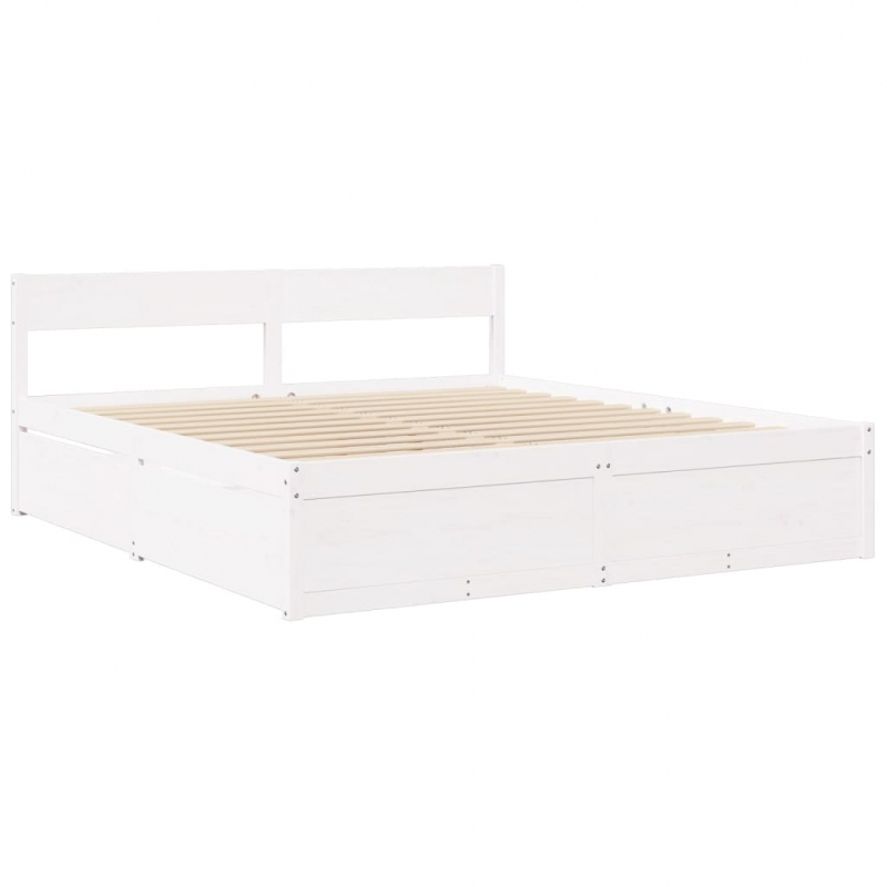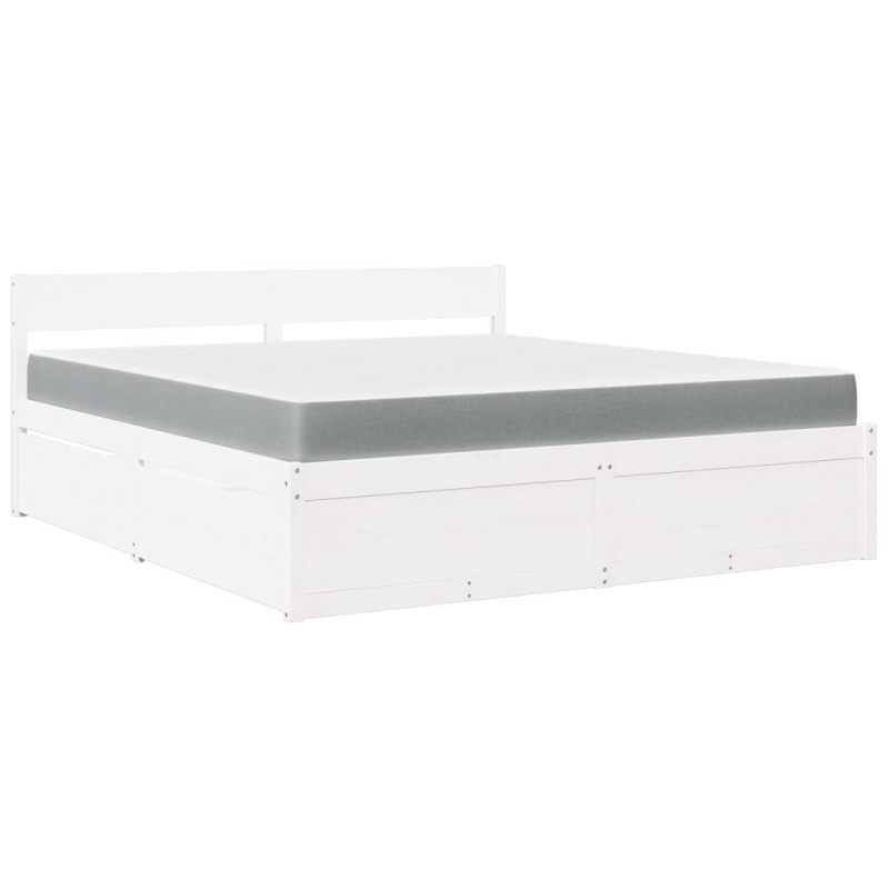 Bett mit Schubladen und Matratze Weiß 180x200 cm Massivholz