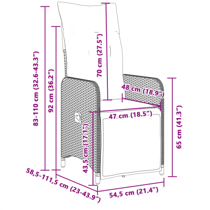 • Abmessungen in Sitzposition: 54,5 x 58,5 x 92 cm (B x T x H)