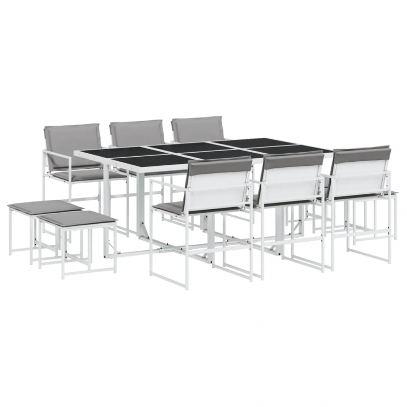 11-tlg. Garten-Essgruppe mit Kissen Weiß Textilene