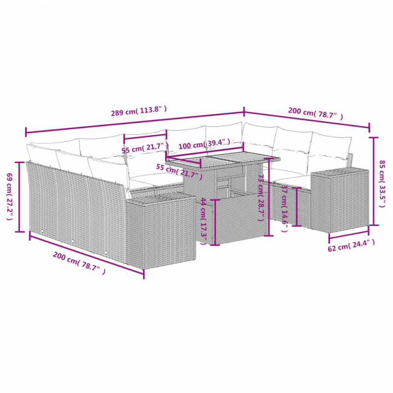 • 9 x Sitzkissen mit abnehmbarem und waschbarem Bezug