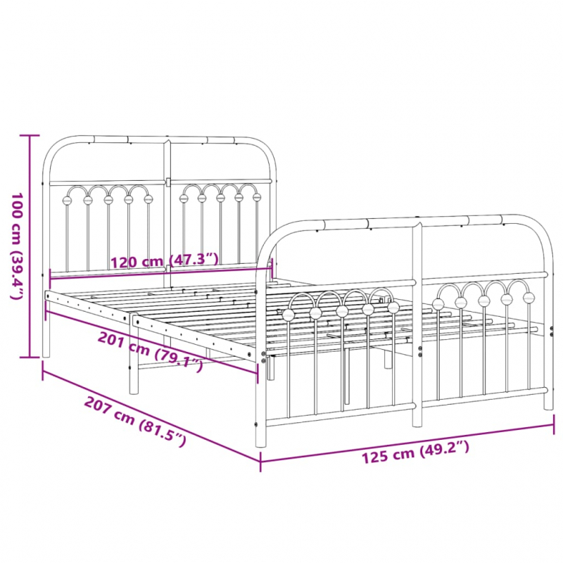 Bettgestell mit Kopf- und Fußteil Metall Schwarz 120x200 cm