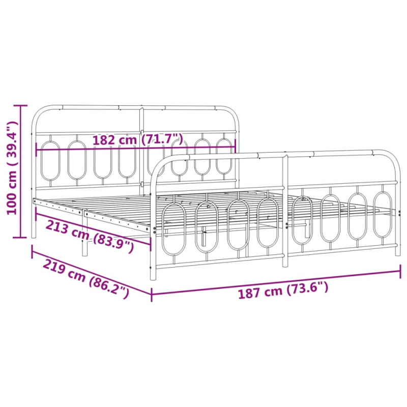 Bettgestell mit Kopf- und Fußteil Metall Schwarz 183x213 cm