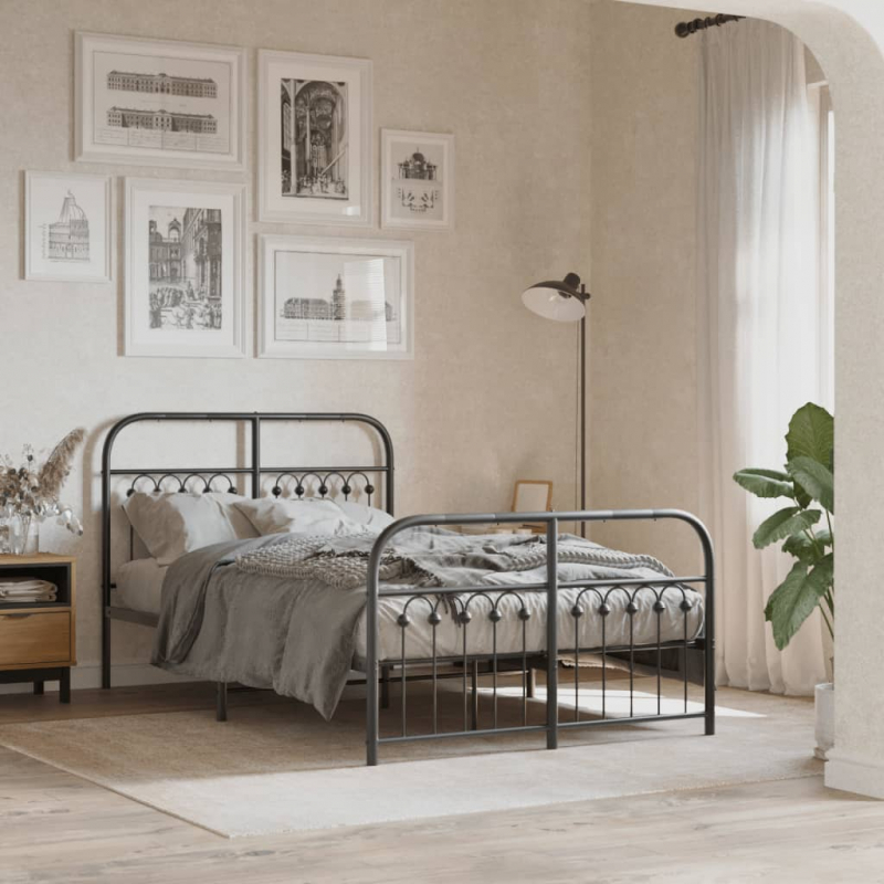 Bettgestell mit Kopf- und Fußteil Metall Schwarz 120x190 cm