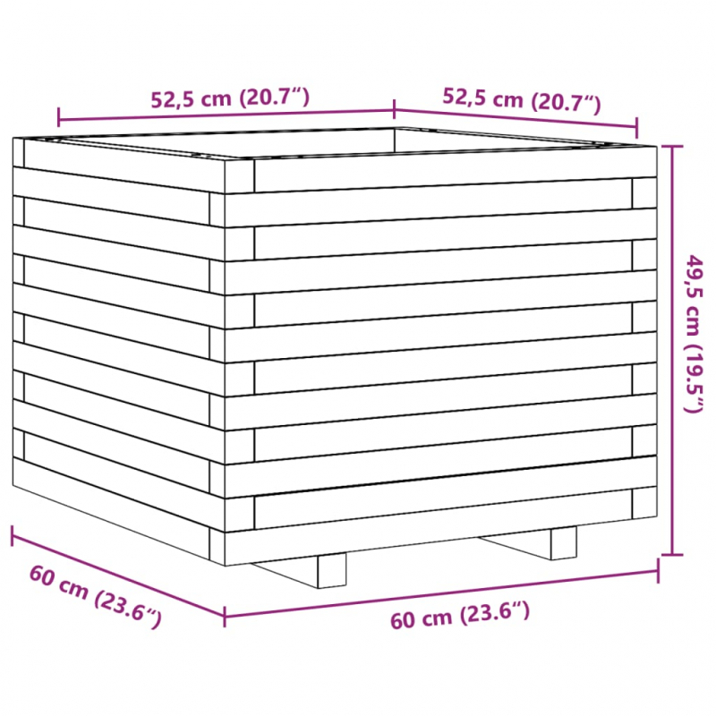 Pflanzkübel 60x60x49,5 cm Massivholz Kiefer