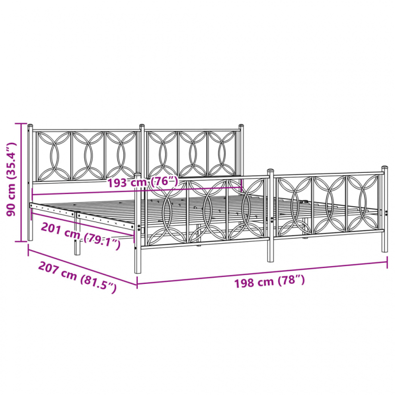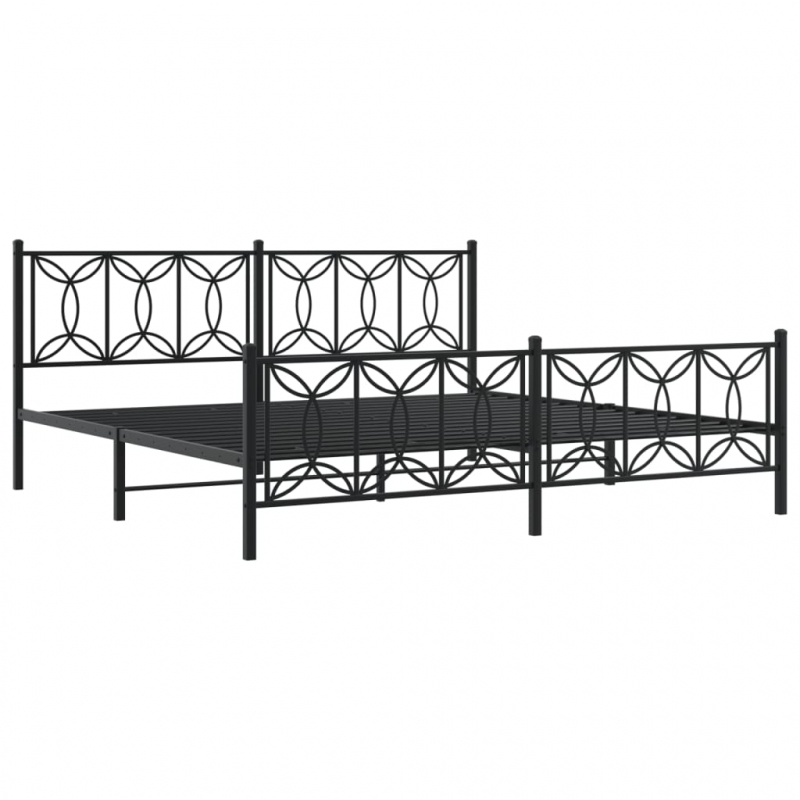 Bettgestell mit Kopf- und Fußteil Metall Schwarz 193x203 cm