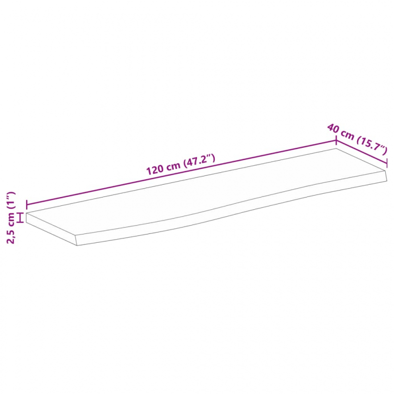 Tischplatte mit Baumkante 120x40x2,5 cm Massivholz Mango