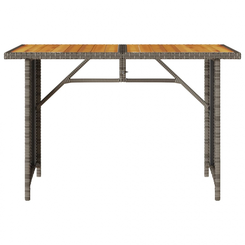 Mit seinen klaren Linien und seinem schlichten Design ist dieser Gartentisch mit Holzplatte eine ausgezeichnete Wahl für deinen Garten, deine Terrasse und andere Außenbereiche. Langlebiges Material: PE-Rattan, auch als Poly Rattan bekannt, ist ein robustes, pflegeleichtes synthetisches Material, das die Optik von natürlichem Rattan aufweist. Es kennzeichnet sich durch ein geringes Eigengewicht und lässt sich einfach reinigen. Aufgrund seiner Haltbarkeit und Witterungsbeständigkeit wird es häufig bei der Herstellung von Gartenmöbeln verwendet.Tischplatte aus Holz: Die Tischplatte des Gartentisches besteht aus robustem und langlebigem Akazienholz, sodass sie leicht mit einem feuchten Tuch gereinigt werden. Der Outdoor-Tisch verleiht deinem Außenbereich einen Hauch von Eleganz.Robuster und stabiler Rahmen: Dank des pulverbeschichteten Stahlrahmens ist das Outdoor-Möbel robust, stabil und für den täglichen Einsatz im Außenbereich geeignet. Gut zu wissen:Wir empfehlen dir, deine Gartenmöbel mit einer wasserdichten Hülle zu schützen, um lange Zeit eine ansprechende Optik aufzuweisen.