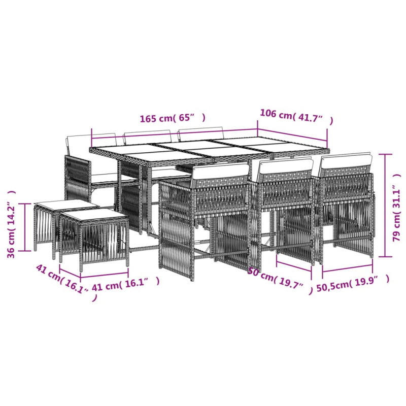 11-tlg. Garten-Essgruppe mit Kissen Schwarz Poly Rattan
