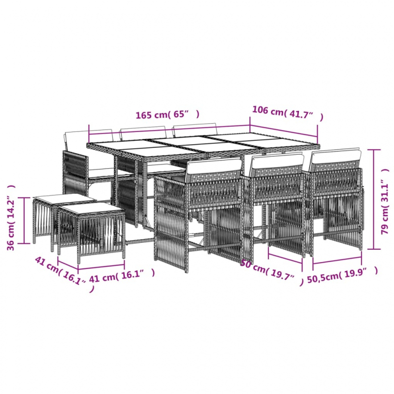 Diese Garten-Essgruppe ist eine ideale Wahl für Mahlzeiten im Freien oder einfach nur zum Entspannen im Garten, Hinterhof oder auf der Terrasse. Langlebiges Material: PE-Rattan, auch als Poly Rattan bekannt, ist ein robustes, pflegeleichtes synthetisches Material, das die Optik von natürlichem Rattan aufweist. Es kennzeichnet sich durch ein geringes Eigengewicht und lässt sich einfach reinigen. Aufgrund seiner Haltbarkeit und Witterungsbeständigkeit wird es häufig bei der Herstellung von Gartenmöbeln verwendet.Platzsparende Aufbewahrung: Dank der klappbaren Rückenlehnen lassen sich die Stühle unter dem Tisch verstauen, sodass die gesamte Essgruppe bei Nichtgebrauch eine platzsparende Würfelform bildet.Bequemes Sitzerlebnis: Dieser Gartensessel mit dick gepolsterten Kissen bietet ein angenehmes Sitzgefühl.Abnehmbarer und waschbarer Bezug: Die Sitzkissen verfügen über abnehmbare Bezüge, die sich ganz einfach waschen und reinigen lassen. Dank der Klappen an der Rückseite können die Kissen ganz einfach an den Rückenlehnen befestigt werden.Tischplatte aus Glas: Die Tischplatte des Gartentisches besteht aus starkem und langlebigem Hartglas, sodass sie leicht mit einem feuchten Tuch gereinigt werden kann und deinem Außenbereich einen Hauch von Eleganz verleiht. Gut zu wissen:Wir empfehlen dir, deine Gartenmöbel mit einer wasserdichten Hülle zu schützen, um lange Zeit eine ansprechende Optik aufzuweisen.