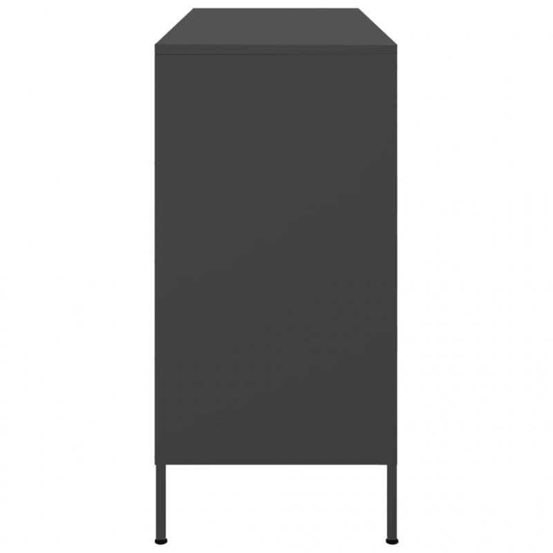 Dieses robuste Sideboard im Industrie-Stil ist eine zeitlose und moderne Ergänzung zu deinem Schlafzimmer oder Wohnzimmer. Stabiles Material: Der Rahmen des Beistellschrankes besteht aus kaltgewalztem Stahl. Kaltgewalzter Stahl ist eine Art kohlenstoffarmer Stahl, der im „Kaltwalzverfahren“ hergestellt und bei nahezu normalen Raumtemperaturen verarbeitet wird. Kaltgewalzter Stahl besitzt eine glattere Oberfläche, eine höhere Festigkeit und lässt sich präziser verarbeiten.Reichlich Stauraum: Dieses Sideboard bietet reichlich Platz, um deine Zeitschriften, Bücher, DVDs, Fernbedienungen und andere kleine Gegenstände gut organisiert und in Reichweite aufzubewahren.Verstellbare Schraubfüße: Dieses Schränkchen ist mit vier Stellfüßen ausgestattet, um Bodenunebenheiten auszugleichen und Stabilität und Gleichgewicht zu gewährleisten.Praktische Tür: Hinter den Türen kannst du kleinere Gegenstände verstauen, und so einen sauberen und aufgeräumten Raum genießen.Einfache Reinigung: Der Schrank aus Metall ist mit einem feuchten Tuch leicht zu reinigen und erfordert wenig Pflege. Achtung:Um ein Umkippen zu vermeiden, sollte dieses Produkt mit der mitgelieferten Wandhalterung gesichert werden.