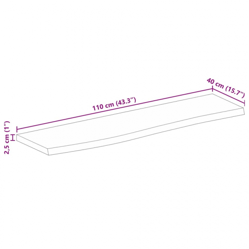 Tischplatte mit Baumkante 110x40x2,5 cm Massivholz Mango