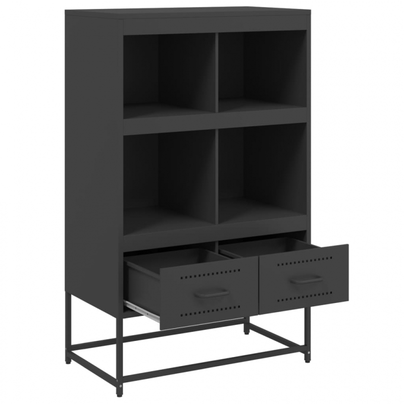 Auf der Suche nach einem stilvollen Highboard? Dieser gut gestaltete Schrank verleiht deiner Einrichtung eine elegante Note! Langlebiges Material: Stahl ist ein außergewöhnlich hartes und starkes Material. Er bietet Robustheit und Stabilität. Kaltgewalztes Stahlblech weist eine glatte Oberfläche auf und lässt sich präzise verarbeiten.Reichlich Stauraum: Dieses Highboard bietet praktischen Stauraum zur ordentlichen und griffbereiten Aufbewahrung von Zeitschriften, Büchern, Fernbedienungen und verschiedenen Kleinigkeiten.Pflegeleicht: Der Schrank ist mit einem feuchten Tuch leicht zu reinigen und erfordert wenig Pflege. Achtung:Um ein Umkippen zu verhindern, muss dieses Produkt mit einer Wandhalterung (nicht im Lieferumfang enthalten) gesichert werden.