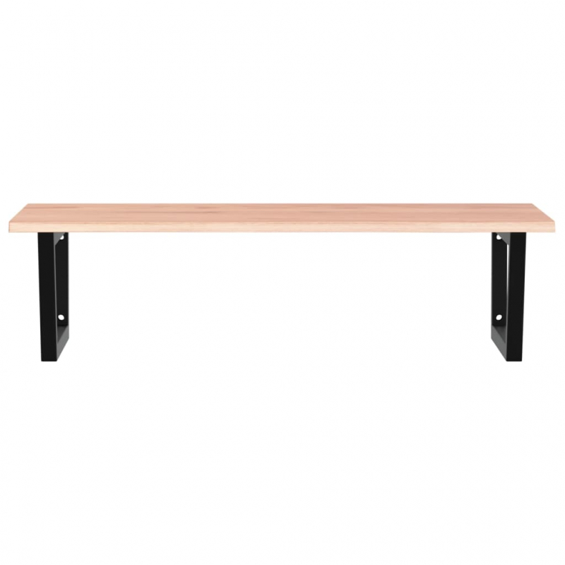 Das Regal lässt sich sicher an der Wand befestigen und bietet eine elegante und platzsparende Lösung für dein Badezimmer. Robust und langlebig: Diese Waschtisch-Platte hat Stahlhalterungen und eine Eichenholz-Platte, wodurch sie robust, stabil und langlebig ist.Platzsparend: Das Schweberegal bietet reichlich Platz für Cremes und Kleinigkeiten. Dank der Trapezform der Halterungen lassen sich auch Handtücher oder andere Sachen platzsparend darauf aufhängen.Einfache Verwendung: Die Holzplatte ist nicht vorgebohrt, sodass dein Waschbecken je nach Bedarf links, rechts oder in der Mitte angebracht werden kann. Dank der vorgebohrten Löcher in der Halterung lässt sich die Ablage am Waschtisch oder an der Wand mühelos befestigen.Vielseitig einsetzbar: Dank ihres modernen Designs schafft die Ablage zusätzlichen Stauraum und fügt sich harmonisch in die unterschiedlichsten Einrichtungen ein. Gut zu wissen:Die Schrauben sind nicht im Lieferumfang enthalten. Du kannst die Schrauben anhand von den folgenden Informationen separat erwerben.Wandbefestigung: 2 x M8-Dehnschraube pro HalterungHolzplatte: 2 x M5x18-Schraube (T=2) oder 2 x M5x20-Schraube (T=2,5/4 cm) pro HalterungAls Naturprodukt kann Holz Aststellen und Unebenheiten aufweisen, die wir mit schwarzer Füllung ausfüllen, um ein glattes Aussehen zu gewährleisten.