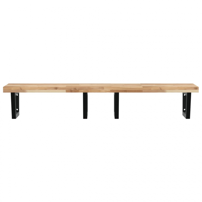 Das Regal lässt sich sicher an der Wand befestigen und bietet eine elegante und platzsparende Lösung für dein Badezimmer. Robust und langlebig: Dieses Waschbeckenregal besteht aus Stahlhalterungen und einer Oberplatte aus massivem Akazienholz, was es robust, stabil und langlebig macht.Platzsparend: Das Schweberegal bietet reichlich Platz für Cremes und Kleinigkeiten. Dank der Trapezform der Halterungen lassen sich auch Handtücher oder andere Sachen platzsparend darauf aufhängen.Einfache Verwendung: Die Holzplatte ist nicht vorgebohrt, sodass dein Waschbecken je nach Bedarf links, rechts oder in der Mitte angebracht werden kann. Dank der vorgebohrten Löcher in der Halterung lässt sich die Ablage am Waschtisch oder an der Wand mühelos befestigen.Vielseitig einsetzbar: Dank ihres modernen Designs schafft die Ablage zusätzlichen Stauraum und fügt sich harmonisch in die unterschiedlichsten Einrichtungen ein. Gut zu wissen:Die Schrauben sind nicht im Lieferumfang enthalten. Du kannst die Schrauben anhand von den folgenden Informationen separat erwerben.Wandbefestigung: 2 x M8-Dehnschraube pro HalterungHolzplatte: 2 x M5x18-Schraube (T=2) oder 2 x M5x20-Schraube (T=2,5/4 cm) pro Halterung