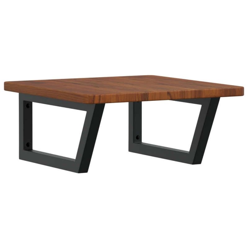 Die Waschtischplatte wird sicher an der Wand befestigt und bietet eine elegante und platzsparende Lösung für dein Badezimmer. Robust und langlebig: Diese Waschtisch-Platte hat Stahlhalterungen und eine Eichenholz-Platte, wodurch sie robust, stabil und langlebig ist. Platzsparend: Die schwebende Waschtischplatte bietet reichlich Platz für das Waschbecken, Seifen, Cremes sowie andere Kleinigkeiten. Dank der Trapezform kannst du Handtücher oder andere Dinge platzsparend an der Halterung aufhängen. Einfache Verwendung: Die Holzplatte ist nicht vorgebohrt, so dass dein Waschbecken je nach Bedarf links, rechts oder mittig installiert werden kann. Dank der vorgebohrten Löcher in der Halterung kann diese einfach mit der Tischplatte montiert und an der Wand befestigt werden. Vielseitige Anwendungsmöglichkeiten: Dank ihres modernen Designs fügt sie sich in verschiedene Arten von Bädern ein. Gut zu wissen:Die Schrauben sind nicht im Lieferumfang enthalten. Du kannst die Schrauben auf der Grundlage der unten aufgeführten Informationen separat erwerben. Wandbefestigung: 2 Stück M8-Dehnschrauben pro Halterung Holzplatte: 2 Stück M5x18-Schrauben (T=2) oder 2 Stück M5x20-Schrauben (T=2,5/4 cm) pro Halterung