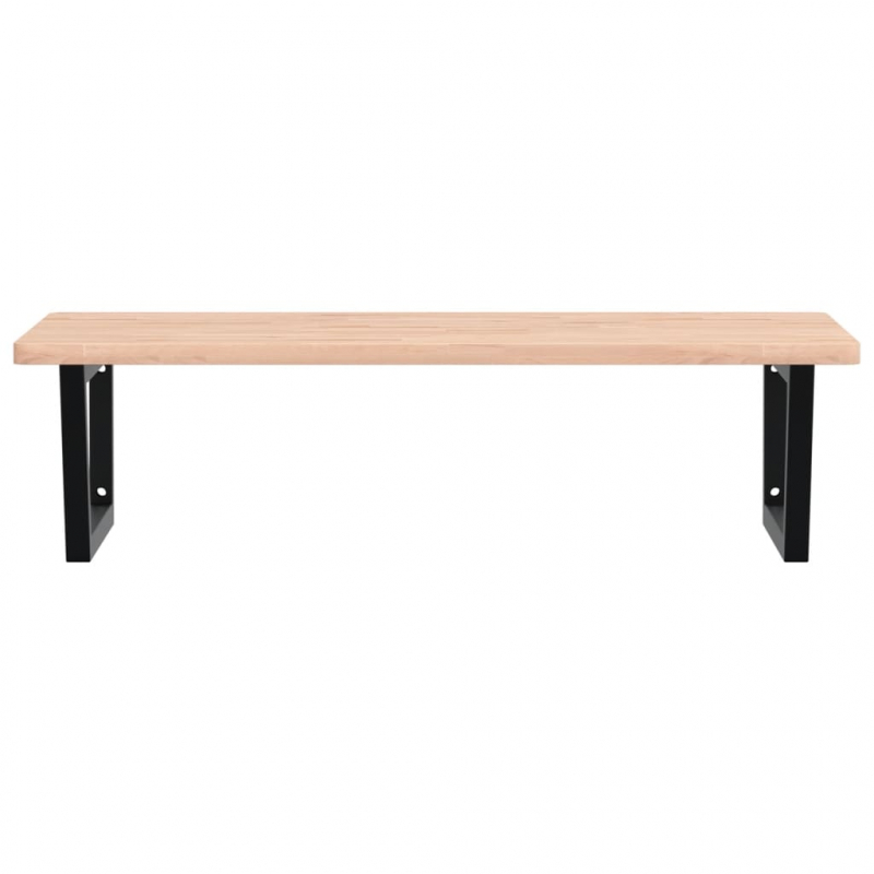 Die Waschtischplatte wird sicher an der Wand befestigt und bietet eine elegante und platzsparende Lösung für dein Badezimmer. Robust und langlebig: Dieses Waschbeckenregal besteht aus einem Stahlgestell und einer Oberplatte aus massivem Buchenholz, was es robust, stabil und langlebig macht. Platzsparend: Die schwebende Waschtischplatte bietet reichlich Platz für das Waschbecken, Seifen, Cremes sowie andere Kleinigkeiten. Dank der Trapezform kannst du Handtücher oder andere Dinge platzsparend an der Halterung aufhängen. Einfache Verwendung: Die Holzplatte ist nicht vorgebohrt, so dass dein Waschbecken je nach Bedarf links, rechts oder mittig installiert werden kann. Dank der vorgebohrten Löcher in der Halterung kann diese einfach mit der Tischplatte montiert und an der Wand befestigt werden. Vielseitige Anwendungsmöglichkeiten: Dank ihres modernen Designs fügt sie sich in verschiedene Arten von Bädern ein. Gut zu wissen:Die Schrauben sind nicht im Lieferumfang enthalten. Du kannst die Schrauben auf der Grundlage der unten aufgeführten Informationen separat erwerben. Wandbefestigung: 2 Stück M8-Dehnschrauben pro Halterung Holzplatte: 2 Stück M5x18-Schrauben (T=2) oder 2 Stück M5x20-Schrauben (T=2,5/4 cm) pro Halterung