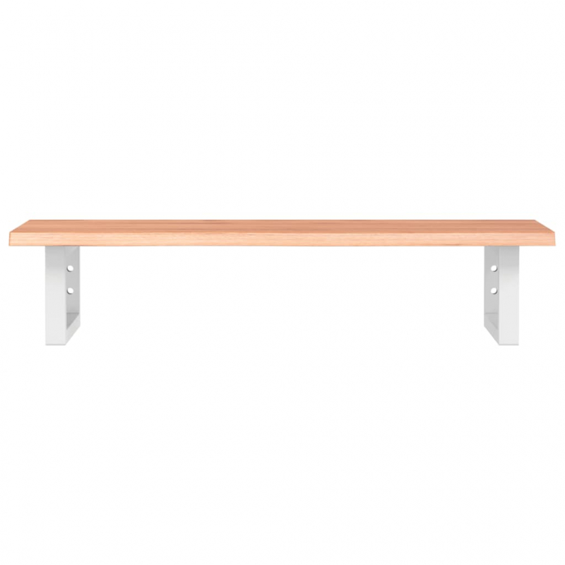 Das Regal lässt sich sicher an der Wand befestigen und bietet eine elegante und platzsparende Lösung für dein Badezimmer. Robust und langlebig: Diese Waschtisch-Platte hat Stahlhalterungen und eine Eichenholz-Platte, wodurch sie robust, stabil und langlebig ist.Platzsparend: Das Schweberegal bietet reichlich Platz für Cremes und verschiedene Kleinigkeiten. Dank der rechteckigen Form der Halterungen kannst du auch Handtücher oder andere Sachen darauf platzsparend aufhängen.Einfache Verwendung: Die Holzplatte ist nicht vorgebohrt, sodass dein Waschbecken je nach Bedarf links, rechts oder in der Mitte angebracht werden kann. Dank der vorgebohrten Löcher in der Halterung lässt sich die Ablage am Waschtisch oder an der Wand mühelos befestigen.Vielseitig einsetzbar: Dank ihres modernen Designs schafft die Ablage zusätzlichen Stauraum und fügt sich harmonisch in die unterschiedlichsten Einrichtungen ein. Gut zu wissen:Die Schrauben sind nicht im Lieferumfang enthalten. Du kannst die Schrauben anhand von den folgenden Informationen separat erwerben.Wandbefestigung: 2 x M8-Dehnschraube pro HalterungHolzplatte: 2 x M5x18-Schraube (T=2) oder 2 x M5x20-Schraube (T=2,5/4 cm) pro HalterungAls Naturprodukt kann Holz Aststellen und Unebenheiten aufweisen, die wir mit schwarzer Füllung ausfüllen, um ein glattes Aussehen zu gewährleisten.