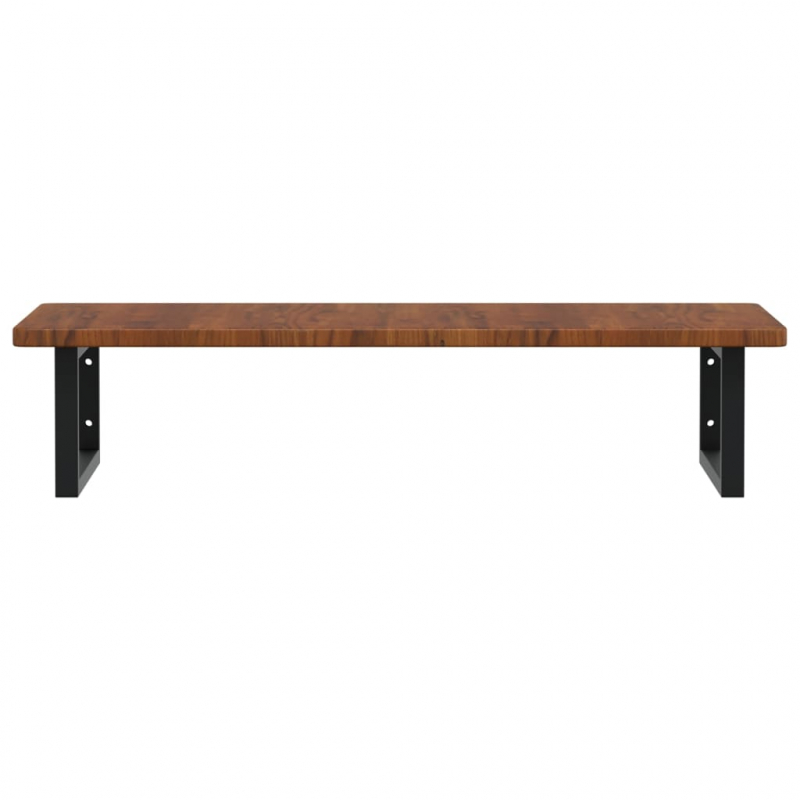 Die Waschtischplatte wird sicher an der Wand befestigt und bietet eine elegante und platzsparende Lösung für dein Badezimmer. Robust und langlebig: Diese Waschtisch-Platte hat Stahlhalterungen und eine Eichenholz-Platte, wodurch sie robust, stabil und langlebig ist. Platzsparend: Das Schweberegal bietet reichlich Platz für Cremes und verschiedene Kleinigkeiten. Dank der rechteckigen Form der Halterungen kannst du auch Handtücher oder andere Sachen darauf aufhängen. Einfache Verwendung: Die Holzplatte ist nicht vorgebohrt, so dass dein Waschbecken je nach Bedarf links, rechts oder mittig installiert werden kann. Dank der vorgebohrten Löcher in der Halterung kann diese einfach mit der Tischplatte montiert und an der Wand befestigt werden. Vielseitige Anwendungsmöglichkeiten: Dank ihres modernen Designs fügt sie sich in verschiedene Arten von Bädern ein. Gut zu wissen:Die Schrauben sind nicht im Lieferumfang enthalten. Du kannst die Schrauben auf der Grundlage der unten aufgeführten Informationen separat erwerben. Wandbefestigung: 2 Stück M8-Dehnschrauben pro Halterung Holzplatte: 2 Stück M5x18-Schrauben (T=2) oder 2 Stück M5x20-Schrauben (T=2,5/4 cm) pro Halterung