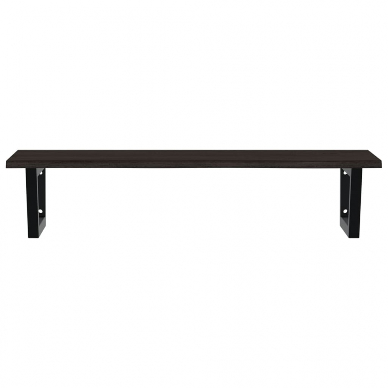 Das Regal lässt sich sicher an der Wand befestigen und bietet eine elegante und platzsparende Lösung für dein Badezimmer. Robust und langlebig: Diese Waschtisch-Platte hat Stahlhalterungen und eine Eichenholz-Platte, wodurch sie robust, stabil und langlebig ist.Platzsparend: Das Schweberegal bietet reichlich Platz für Cremes und Kleinigkeiten. Dank der Trapezform der Halterungen lassen sich auch Handtücher oder andere Sachen platzsparend darauf aufhängen.Einfache Verwendung: Die Holzplatte ist nicht vorgebohrt, sodass dein Waschbecken je nach Bedarf links, rechts oder in der Mitte angebracht werden kann. Dank der vorgebohrten Löcher in der Halterung lässt sich die Ablage am Waschtisch oder an der Wand mühelos befestigen.Vielseitig einsetzbar: Dank ihres modernen Designs schafft die Ablage zusätzlichen Stauraum und fügt sich harmonisch in die unterschiedlichsten Einrichtungen ein. Gut zu wissen:Die Schrauben sind nicht im Lieferumfang enthalten. Du kannst die Schrauben anhand von den folgenden Informationen separat erwerben.Wandbefestigung: 2 x M8-Dehnschraube pro HalterungHolzplatte: 2 x M5x18-Schraube (T=2) oder 2 x M5x20-Schraube (T=2,5/4 cm) pro HalterungAls Naturprodukt kann Holz Aststellen und Unebenheiten aufweisen, die wir mit schwarzer Füllung ausfüllen, um ein glattes Aussehen zu gewährleisten.