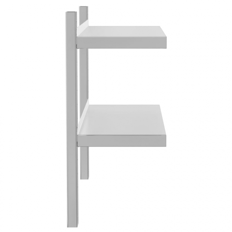 Wandregal mit 2 Böden 75x23,5x60 cm Silbern Edelstahl