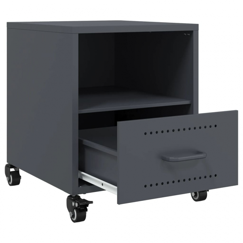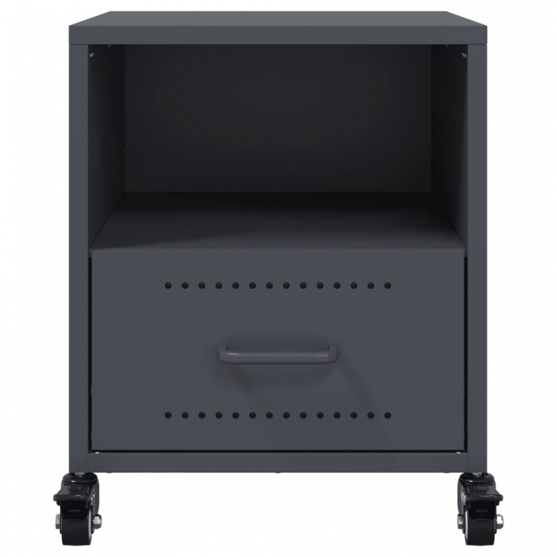 Mit seinem stilvollen Design ist dieser Nachttisch eine zeitlose Ergänzung zu deiner Inneneinrichtung. Stabiles Material: Das Gestell des Nachttisches besteht aus kaltgewalztem Stahl. Kaltgewalzter Stahl ist eine Art kohlenstoffarmer Stahl, der im „Kaltwalzverfahren“ hergestellt und bei nahezu normalen Raumtemperaturen verarbeitet wird. Kaltgewalzter Stahl besitzt eine glattere Oberfläche, eine höhere Festigkeit und lässt sich präziser verarbeiten.Reichlich Stauraum: Dieser Schrank bietet praktischen Stauraum, um deine Zeitschriften, Bücher, Fernbedienungen und andere kleine Gegenstände gut geordnet und in Reichweite aufzubewahren.Pflegeleicht: Der Tisch lässt sich mit einem feuchten Tuch leicht reinigen und erfordert wenig Pflege.Einfaches Umstellen: Dieser Beistelltisch verfügt über 4 Rollen und lässt sich daher flexibel und mühelos umher verschieben.Praktischer Griff: Der Nachtschrank ist mit einem Griff ausgestattet, der das Öffnen und Schließen des Schranks erleichtert und gleichzeitig für zusätzliche Schönheit sorgt.