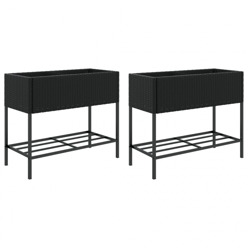 Hochbeete mit Ablage 2 Stk. Schwarz 90x40x75 cm Poly Rattan