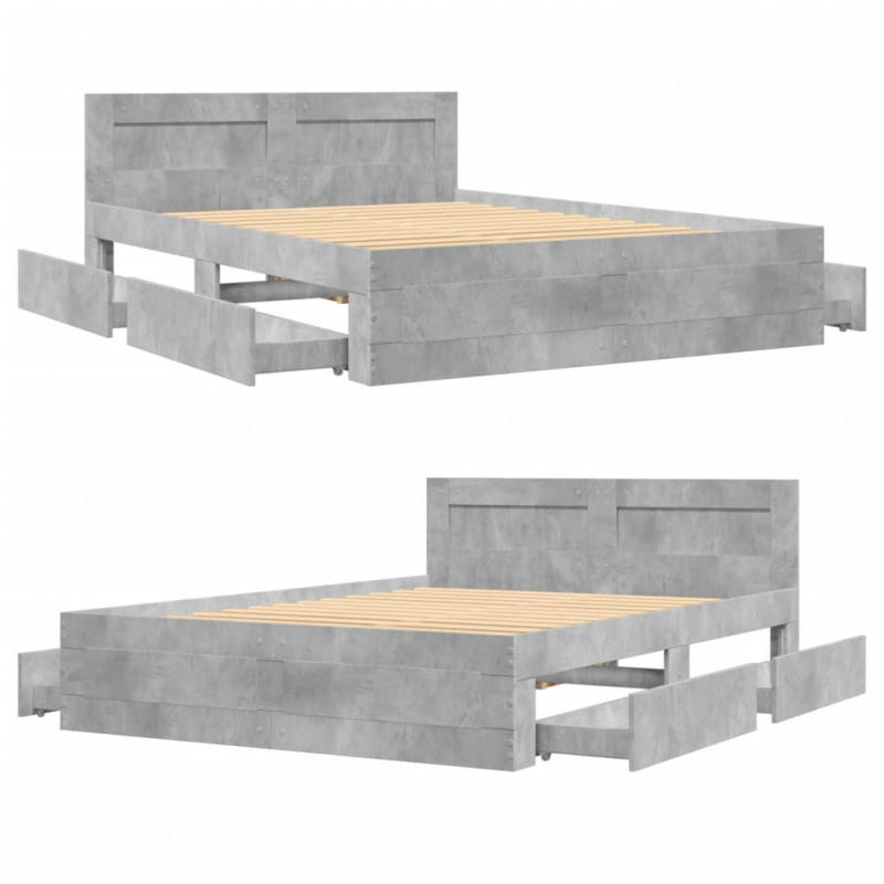 Bettgestell mit Kopfteil Betongrau 140x200 cm Holzwerkstoff