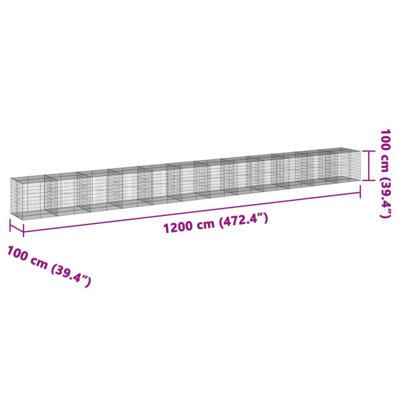Gabione mit Deckel 1200x100x100 cm Verzinktes Eisen
