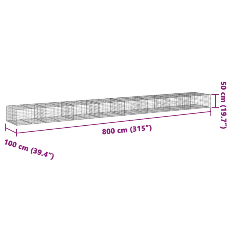 Gabione mit Deckel 800x100x50 cm Verzinktes Eisen