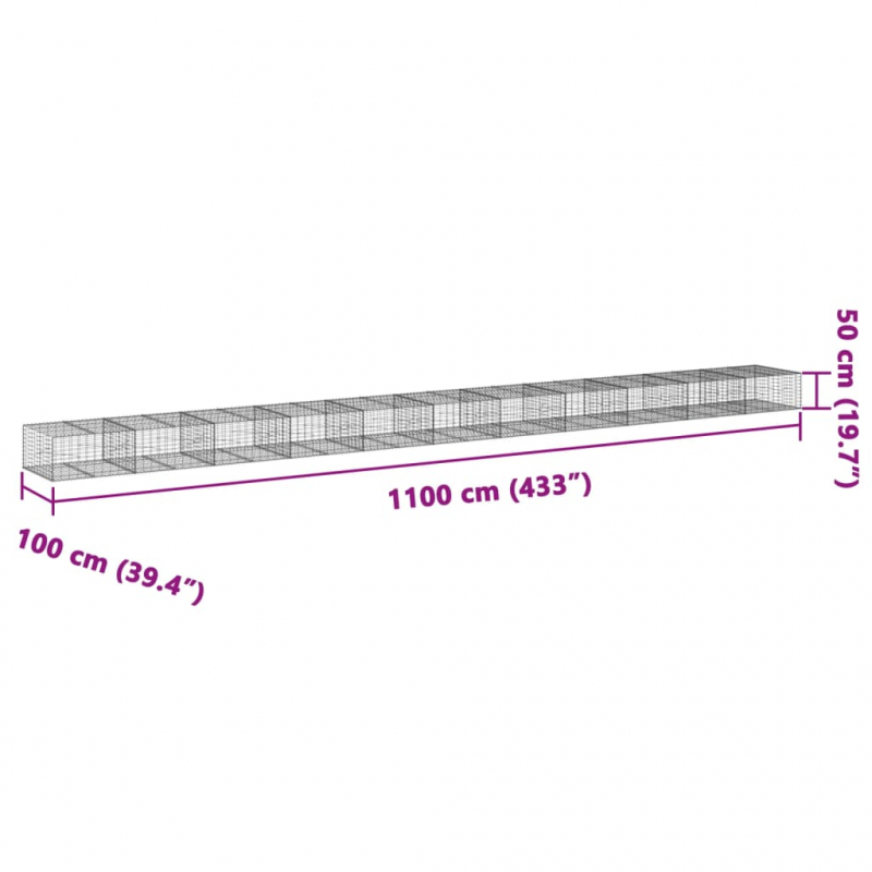 Gabione mit Deckel 1100x100x50 cm Verzinktes Eisen