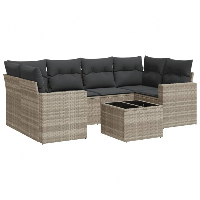7-tlg. Garten-Sofagarnitur mit Kissen Hellgrau Poly Rattan