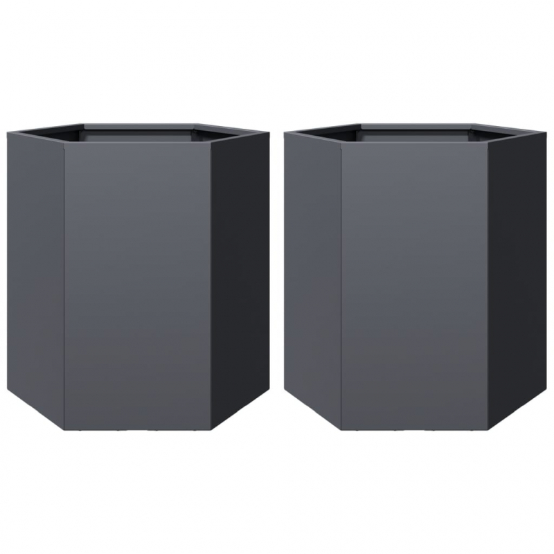 Garten-Pflanzgefäße 2 Stück Anthrazit Sechseckig 46x40x45 Stahl