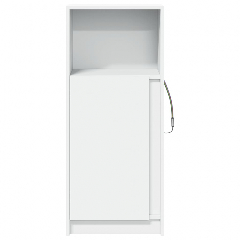 Dekoriere dein Zuhause mit diesem modernen Sideboard mit LED-Beleuchtung, das sich leicht mit Möbeln in jedem Stil kombinieren lässt. Langlebiges Material: Der Holzwerkstoff ist von außergewöhnlicher Qualität mit glatter Oberfläche und zeichnet sich außerdem durch Festigkeit, Stabilität und Widerstandsfähigkeit gegen Feuchtigkeit aus.RGB-LED-Lichter: Das Buffet ist mit leuchtenden RGB-LED-Leuchten ausgestattet. Mit verschiedenen anpassbaren Menüs kannst du die Farbe der Lichter mühelos ändern und sie sogar so einstellen, dass sie sich automatisch anpassen. Diese LED-Leuchten unterstreichen nicht nur den modernen Look des Sideboards, sondern tragen auch zu seiner trendigen Ausstrahlung bei.Ausreichend Stauraum: Der Aufbewahrungsschrank bietet viel Platz, um deine alltäglichen Dinge übersichtlich und leicht zugänglich aufzubewahren.Präsentationsfunktion: Die robuste Oberseite des Flurschranks eignet sich ideal zum Ausstellen von Dekorationsgegenständen, Bilderrahmen oder Topfpflanzen.Praktische Türen: Verstecke deine Utensilien hinter den Türen des Seitenschranks, um sie vor Staub zu schützen. Gut zu wissen:Das Produkt verfügt über einen USB-Anschluss, für den eine zertifizierte 5V-USB-Stromquelle erforderlich ist (nicht im Lieferumfang enthalten). Achtung:Um ein Umkippen zu vermeiden, sollte dieses Produkt mit der mitgelieferten Wandhalterung gesichert werden.