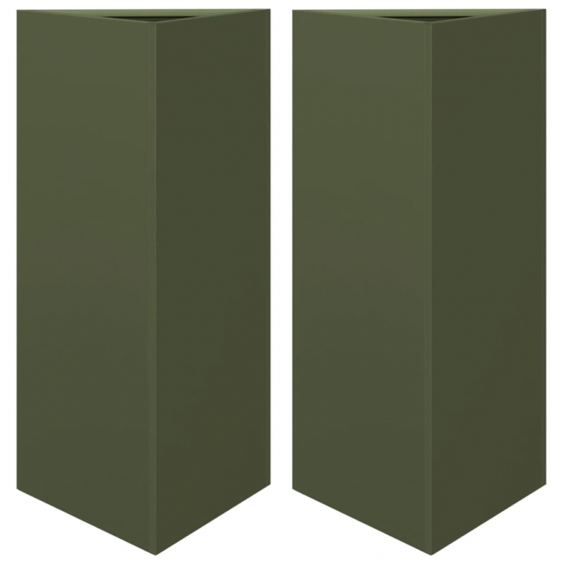 Pflanzkübel 2 Stk. Olivgrün Dreieckig 40x34,5x70 cm Stahl