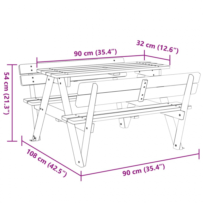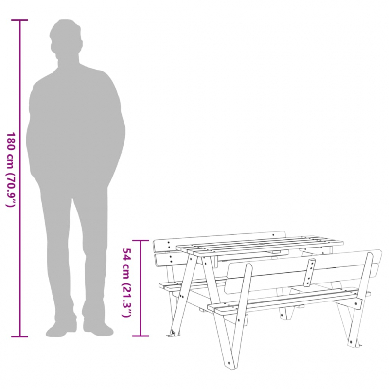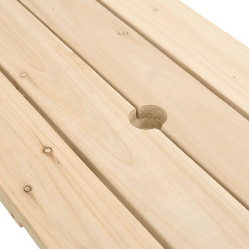 Dieser Picknicktisch eignet sich perfekt für Terrassen, Gärten und Außenbereiche und bietet deinen Kleinen und ihren Freunden einen bequemen und einladenden Platz zum Entspannen und Spielen. 2-in-1 Tisch & Bank: Der Picknicktisch mit Bänken eignet sich ideal für Kinderpartys und Versammlungen. Er bietet reichlich Platz für Essen, Getränke und Zubehör sowie bequeme Sitzgelegenheiten, auf denen Kinder neuen Erinnerungen schaffen können.Zuverlässiges und stabiles Material: Dieser Picknicktisch ist aus massivem Tannenholz gefertigt und garantiert Stabilität, Haltbarkeit und Langlebigkeit.Robuste und stabile Struktur: Dieser Picknicktisch besitzt eine Struktur in W-Form, die Stabilität und Sicherheit bei verschiedenen Aktivitäten gewährleistet.Sonnenschirmloch: Die Tischplatte ist mit einem Loch für einen Sonnenschirm versehen, sodass du an sonnigen Tagen einen Schirm anbringen kannst, um Schatten zu spenden. Gut zu wissen:Dieses Produkt ist nicht für den Einsatz bei schlechten Wetterbedingungen wie starkem Wind, Starkregen, Schnee, Sturm usw. geeignet.Die Lieferung umfasst nur einen Picknicktisch mit integrierten Bänken; der Sonnenschirm ist nicht inbegriffen. In unserem Shop findest du auch den perfekten Sonnenschirm!