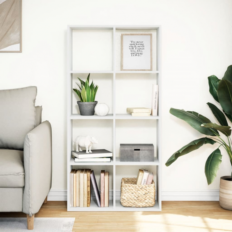 Das moderne Raumteiler-Bücherregal im geometrisches Design bietet viel Stauraum und eignet sich perfekt, um deinen Wohnraum stilvoll und aufgeräumt zu halten! Starkes und langlebiges Material: Holzwerkstoff ist ein langlebiges und robustes Material mit einer glatten Oberfläche, das gegen Feuchtigkeit, Verformung und Rissbildung beständig ist; dadurch ist es eine zuverlässige Wahl für die Herstellung von Möbeln.Reichlich Stauraum: Das Bücherregal verfügt über acht würfelförmige Fächer, in denen sich Bücher, Dekoartikel und andere Haushaltsgegenstände aufbewahren lassen.Flexible Aufstellungsmöglichkeiten: Das Regal kann sowohl in der Breite als auch in der Höhe auf den Boden gestellt werden und bietet so vielfältige Möglichkeiten der Raumgestaltung.Vielseitig einsetzbar: Das Regal kann auch als Raumteiler verwendet werden und passt problemlos zu jedem Einrichtungsstil. Es findet Platz im Wohnzimmer, um Dekoartikel zur Schau zu stellen, im Büro, um Bücher und Unterlagen zu verstauen, im Schlafzimmer, um Alltagssachen aufzubewahren, oder im Keller, um Haushaltssachen zu lagern.Pflegeleicht: Dank seiner glatten Oberfläche lässt sich das Raumtrenner-Bücherregal einfach mit einem feuchten Tuch reinigen und erfordert wenig Pflege. Achtung:Um ein Umkippen zu vermeiden, sollte dieses Produkt mit der mitgelieferten Wandhalterung gesichert werden. Gut zu wissen:Schrauben und Dübel für die Montage an der Wand sind nicht enthalten. Passendes Montagezubehör muss separat gekauft werden. Wenn du dir bezüglich der Montage nicht sicher bist, wende dich bitte an einen Fachmann. Bitte lies und befolge jeden Schritt in der Anleitung.