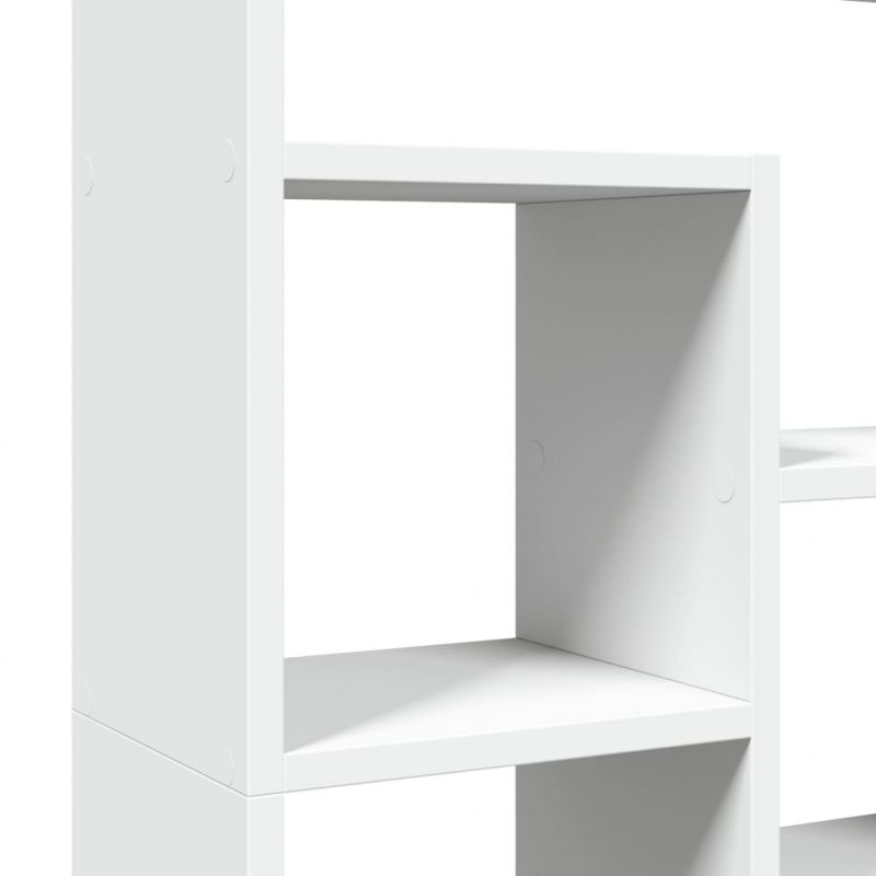 Das moderne Bücherregal weist ein geometrisches Design auf und schafft auch Stauraum, um deinen Raum stilvoll zu organisieren! Starkes und langlebiges Material: Holzwerkstoff ist ein langlebiges und robustes Material mit einer glatten Oberfläche, das gegen Feuchtigkeit, Verformung und Rissbildung beständig ist; dadurch ist es eine zuverlässige Wahl für die Herstellung von Möbeln.Reichlich Stauraum: Mit Fächern in verschiedenen Größen versehen, bietet dieses Bücherregal flexible Aufbewahrungsmöglichkeiten für Gegenstände unterschiedlicher Formen und Größen.Flexible Aufstellungsmöglichkeiten: Das Regal kann sowohl in der Breite als auch in der Höhe auf den Boden gestellt werden und bietet so vielfältige Möglichkeiten der Raumgestaltung.Vielseitig einsetzbar: Das Regal kann auch als Raumteiler verwendet werden und fügt sich harmonisch in jeden Raum ein. Es findet Platz im Wohnzimmer, um Dekoartikel zur Schau zu stellen, im Büro, um Bücher und Unterlagen zu verstauen, im Schlafzimmer, um Alltagssachen aufzubewahren, oder im Keller, um Haushaltssachen zu lagern.Pflegeleicht: Dank seiner glatten Oberfläche lässt sich das Bücherregal leicht mit einem feuchten Tuch reinigen und erfordert weniger Pflege. Achtung:Um ein Umkippen zu vermeiden, sollte dieses Produkt mit der mitgelieferten Wandhalterung gesichert werden. Gut zu wissen:Schrauben und Dübel sind für die Befestigung an der Wand nicht im Lieferumfang enthalten. Wir empfehlen dir, speziell für deine Wände geeignete Schrauben und Dübel zu finden und zu verwenden. Im Zweifelsfall wende dich an einen Fachmann. Bitte lese und befolge jeden Schritt der Anweisungen.
