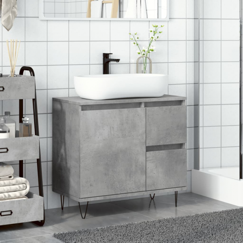 Dieser Waschbeckenunterschrank ist eine hervorragende Bereicherung für dein Badezimmer und verleiht ihm eine aufgeräumte und markante Optik! Langlebiges Material: Holzwerkstoff ist ein Material außergewöhnlicher Qualität mit glatter Oberfläche. Er zeichnet sich durch Festigkeit, Stabilität und Feuchtigkeitsbeständigkeit aus.Praktische Oberplatte: Der Bad-Unterschrank ist oben mit einer Öffnung versehen, wodurch er sich ideal zum Aufnehmen des Waschbeckens eignet.Reichlich Stauraum: Der Waschbeckenschrank bietet reichlich Platz, um wichtigste Toilettenartikel und Badutensilien wie Seife, Shampoo, Zahnpasta usw. zu verstauen.Platzsparendes Design: Die Oberplatte des Badschranks bietet den idealen Platz für das Waschbecken. So kannst du auch den freien Platz unter dem Waschbecken optimal ausnutzen.Eisen-Beine: Die Beine aus Eisen verleihen dem Unterschrank eine industrielle Note und sorgen gleichzeitig für die Stabilität des Waschtisches. Achtung:Um ein Umkippen zu vermeiden, sollte dieses Produkt mit der mitgelieferten Wandhalterung gesichert werden.