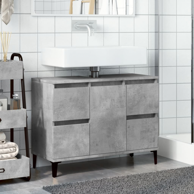 Dieser Waschbeckenunterschrank ist eine großartige Bereicherung für dein Badezimmer und verleiht ihm ein ordentliches und auffälliges Aussehen! Langlebiges Material: Holzwerkstoff ist ein Material von außergewöhnlicher Qualität mit glatter Oberfläche, das sich durch Festigkeit, Stabilität und Feuchtigkeitsbeständigkeit auszeichnet.Viel Stauraum: Der Waschbeckenschrank verfügt über 4 Schubladen und 1 Fach mit einer Tür, die verschiedene Aufbewahrungsmöglichkeiten und zusätzlichen Platz zum Aufbewahren von Gegenständen in deinem Badezimmer bieten. Die Oberseite des Unterschranks ist ideal für die Platzierung des Waschbeckens.Metallfüße: Die Metallfüße verleihen ihm eine moderne und angenehme Optik und sorgen gleichzeitig für Stabilität.Einfache Reinigung: Die Badezimmermöbel lassen sich leicht mit einem feuchten Tuch reinigen. Achtung:Um ein Umkippen zu vermeiden, sollte dieses Produkt mit der mitgelieferten Wandhalterung gesichert werden. Gut zu wissen:Um die Montage so einfach wie möglich zu machen, wird jedes Produkt mit einer Anleitung geliefert.Das Waschbecken ist nicht im Lieferumfang enthalten.