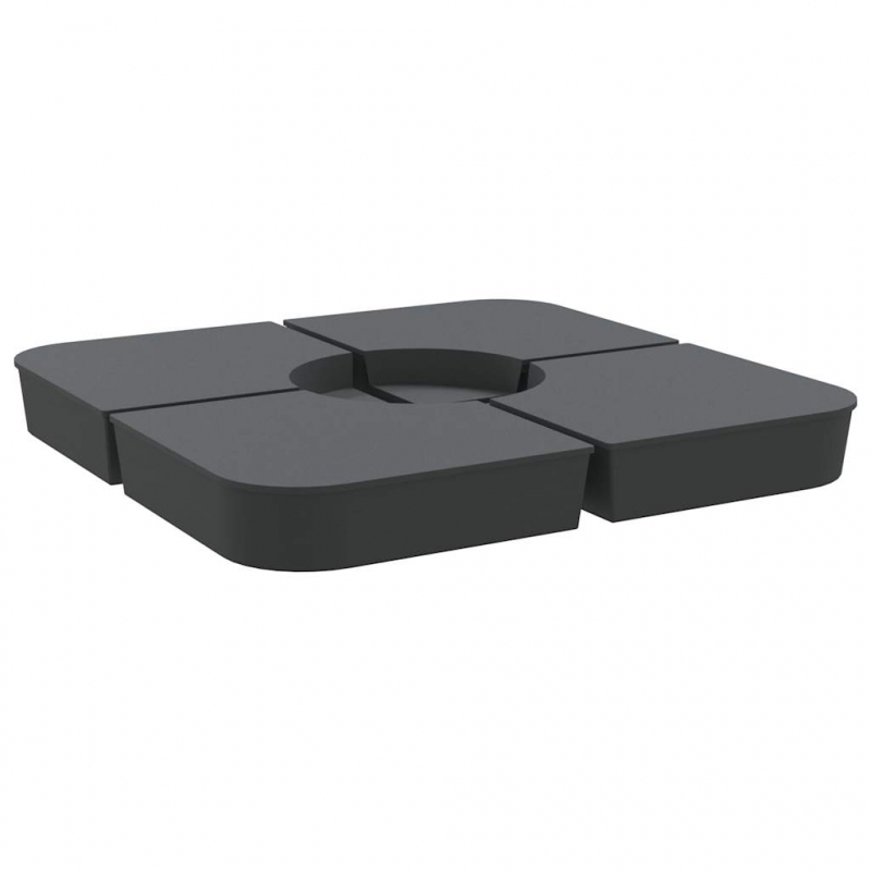 Dieses Sonnenschirmständer-Set bietet Stabilität und Zuverlässigkeit und sorgt dafür, dass dein Schirm stabil und aufrecht bleibt. Langlebiges Material: Der Sonnenschirmständer besteht aus Polypropylen, um eine hohe Haltbarkeit, Tragbarkeit und Langlebigkeit zu gewährleisten.Hohe Stabilität: Fülle den Ständer je nach Bedarf mit Sand, um ein zuverlässiges Fundament zu schaffen und sicherzustellen, dass dein Schirm sicher an seinem Platz bleibt. Jedes einzelne Element lässt sich mit bis zu 25 kg Sand befüllen und das Gesamtgewicht beträgt dabei 100 kg.Benutzerfreundlich: Dieses Schirmständer-Set besteht aus vier Platten, die sich zum Anbringen eines Kreuzfußes (nicht im Lieferumfang enthalten) einfach miteinander verbinden lassen. Dank der breiten Öffnung lässt sich der Sonnenschirmständer einfach mit Sand füllen oder entleeren.Abnehmbar und tragbar: Dieser Sonnenschirmständer besteht aus 4 Platten, die sich bei Nichtgebrauch einfach abnehmen und aufeinander stapeln lassen, um den Transport und die Lagerung zu erleichtern.Breite Anwendungen: Das Sonnenschirmständer-Set lässt sich neben dem Pool, auf der Terrasse, im Garten oder in jedem anderen Außenbereich einsetzen.
