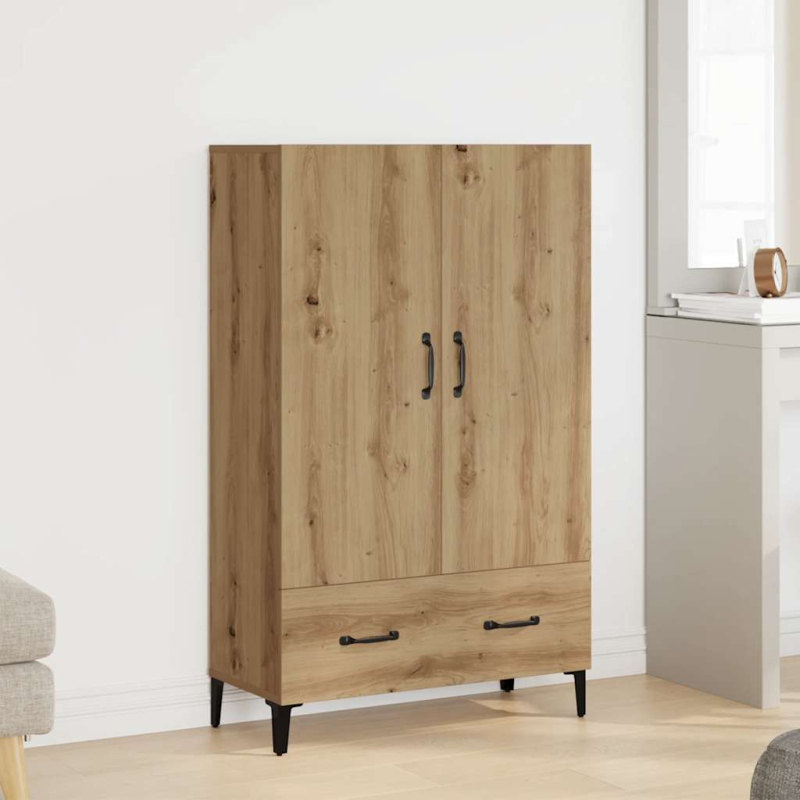 Dieses Highboard bietet sowohl dekorativen Reiz als auch praktischen Stauraum und ist damit eine perfekte Ergänzung für dein Zuhause. Starkes und langlebiges Material: Holzwerkstoff ist ein langlebiges und robustes Material mit einer glatten Oberfläche, das gegen Feuchtigkeit, Verformung und Rissbildung beständig ist, wodurch es eine zuverlässigen Wahl für die Herstellung von Möbeln ist.Reichlich Stauraum: Das Sideboard bietet reichlich Stauraum, um Essgeschirr und andere Haushaltssachen ordentlich und griffbereit aufzubewahren.Praktische Tür: Dank der Tür lassen sich deine Sachen ordentlich, geschützt und außer Sicht aufbewahren.Stabile Oberplatte: Die robuste Oberplatte bietet Platz für Dekoartikel, Bilderrahmen oder kleine Topfpflanzen.Pflegeleicht: Dank seiner glatten Oberfläche lässt sich der Hochschrank mit einem feuchten Tuch leicht reinigen und erfordert wenig Pflege. Achtung:Um ein Umkippen zu vermeiden, sollte dieses Produkt mit der mitgelieferten Wandhalterung gesichert werden.