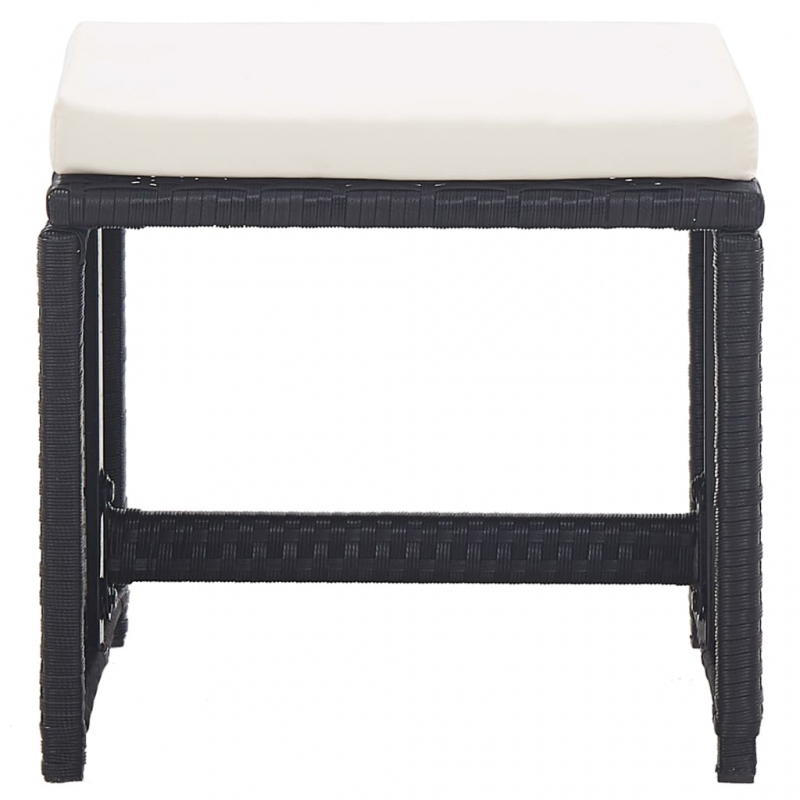 Dieses Set aus 2 Hockern mit sauberem und modernem Design wird eine dezente und praktische Ergänzung zu Ihrem Garten, Ihrer Terrasse oder Ihrem Patio sein. Die wartungsarme Konstruktion aus pulverbeschichtetem Stahl und Poly Rattan sorgt für Robustheit und Haltbarkeit und ist reiß- und verschleißfest. Die dicken Kissen erhöhen Ihren Sitzkomfort. Dank seiner Höhe sind die Gartenhocker auch als Fußstützen einsetzbar. Gönnen Sie sich eine Auszeit, egal ob Sie sitzen oder Ihre Füße auf diesen bequemen Rattanhocker hochlegen. Die Lieferung umfasst 2 Hocker mit Auflagen.